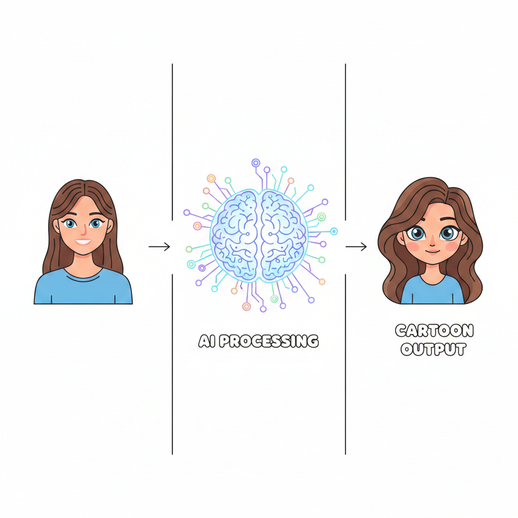 An AI cartoon generator is a tool that uses artificial intelligence to transform input (like a photo or text prompt) into a cartoon-style image. Think of it as a digital artist that has been trained on millions of visual patterns and styles.